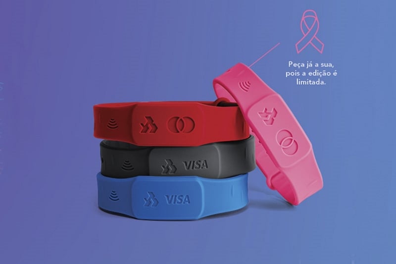 Em alusão ao Outubro Rosa, mês dedicado à prevenção e conscientização do câncer de mama, a pulseira na cor rosa estará disponível, tanto para os portadores de cartão de crédito Banrisul Visa como para usuários dos cartões de crédito Banrisul Mastercard.