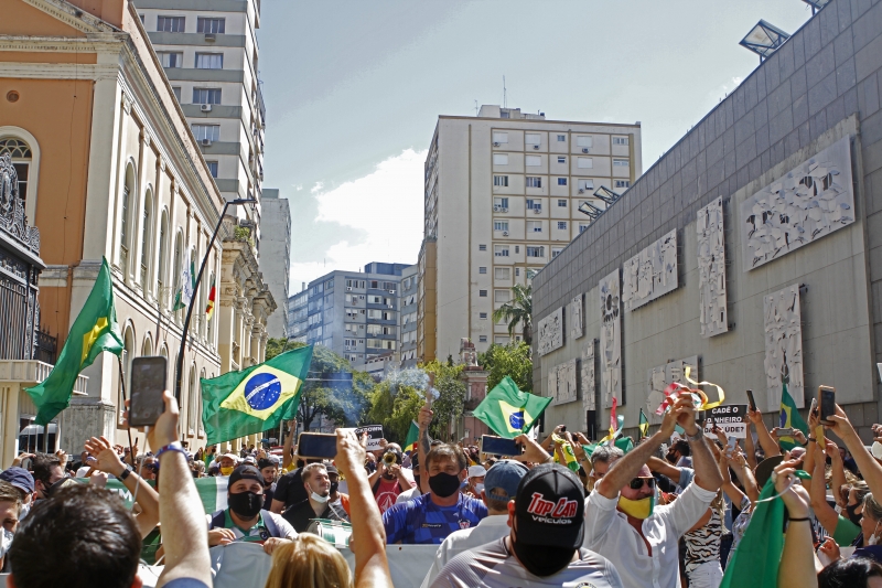 Uma manifestação pela liberação das atividades econômicas e contra as restrições em curso no Rio Grande do Sul, em função do agravamento da pandemia, ocorre nesta tarde em frente ao Palácio Piratini, sede do governo estadual, no Centro Histórico de Porto Alegre. O ato, organizado por representantes de entidades de classe e de segmentos do comércio e de serviços, também reúne comitivas de cidades da Região Metropolitana de Porto Alegre.