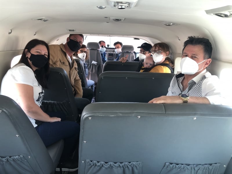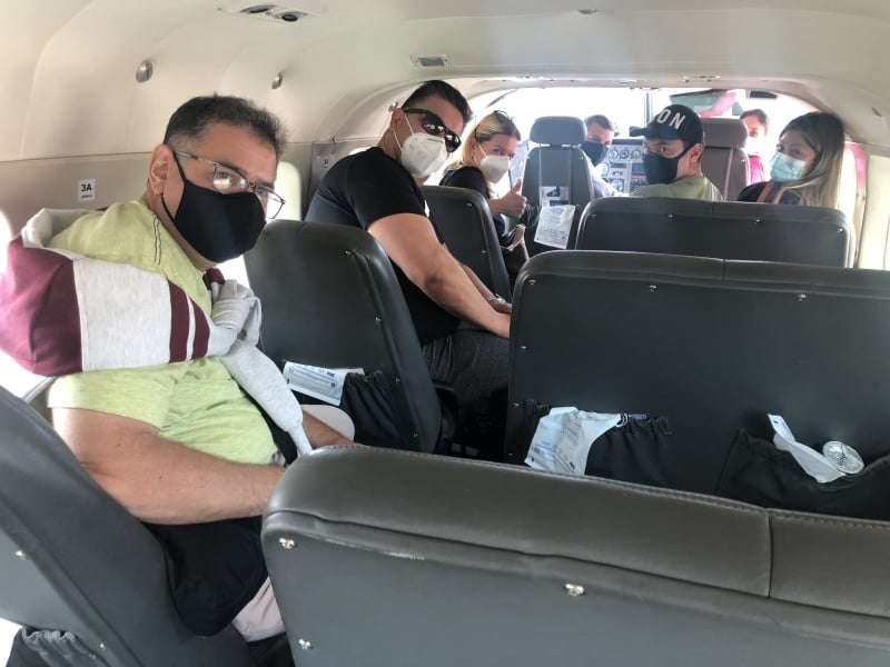 A viagem de volta teve quatro passageiros, cinco com a jornalista. Todos com viagem para ver familiares e passear. Um tecnólogo em radiologia estava com o filho de quatro anos. A aeronave Grande Caravan não tem banheiro. A dica é resolver antes de embarcar às necessidades. Mas o pequeno não segurou. O jeito foi improvisar.