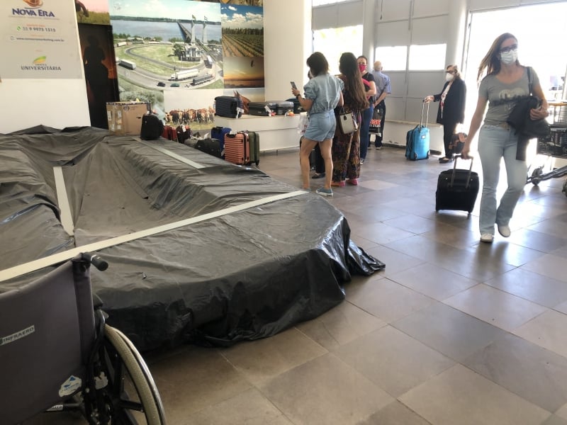 O terminal fica junto à Base Aérea e compartilha a pista da Força Aérea Brasileira (FAB). Foi o único local que a reportagem registrou monitoramento de temperatura, previsto em protocolos da pandemia, no acesso ao terminal, feito por guardas municipais.