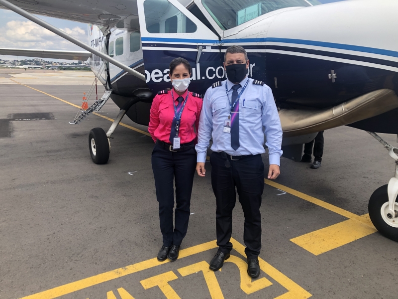 Camello (à esquerda) saiu de Recife para experimentar o voo no Grand Caravan para Canela