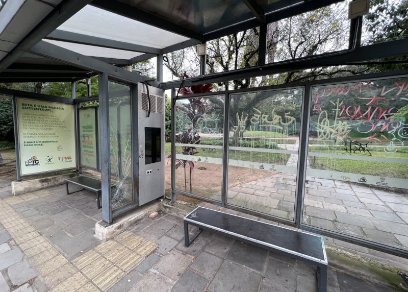 Primeira parada 'sustentável' de Porto Alegre é vandalizada em parque
