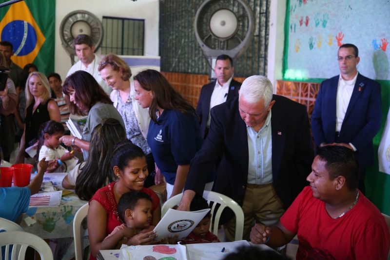 Em passagem pelo Brasil, Mike Pence visita abrigo de refugiados venezuelanos