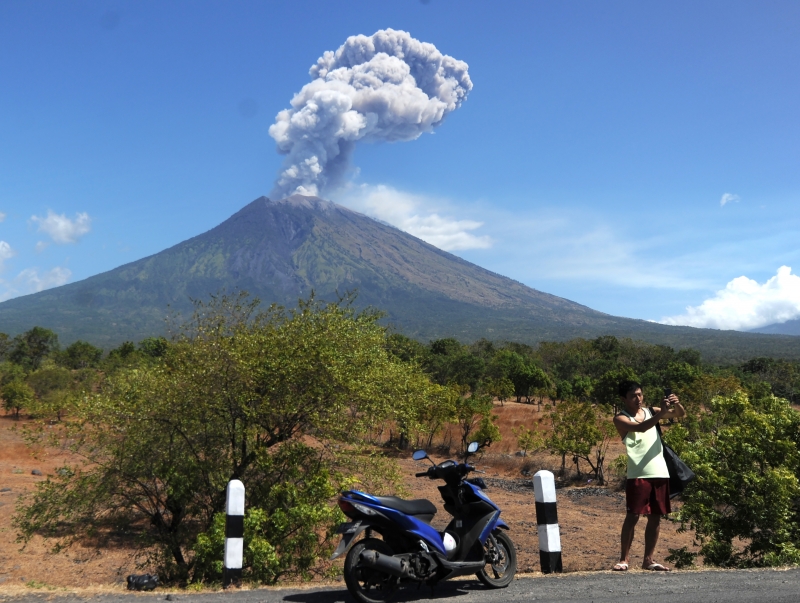 Erupção do vulcão Agung vira ponto turístico na Indonésia