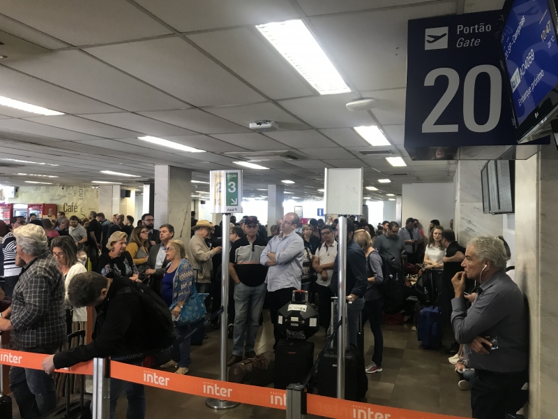 Área de embarque do terminal 2 do aeroporto Salgado Filho megalotada