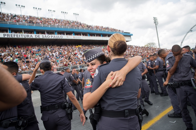 Uma cerimônia de formatura realizada nesta sexta-feira (23) marcou o início das atividades de cerca de 1,8 mil soldados de 2ª classe na Polícia Militar do Estado de São Paulo, entre os quais 410 mulheres. Visivelmente emocionados, os novos profissionais da área de segurança passaram por doze meses de aulas, que incluíram 49 disciplinas como Direitos Humanos, Inteligência Policial, Gerenciamento de Crises e Doutrina de Polícia Comunitária. Eles haviam sido selecionados, por meio de concurso público, entre 137.127 candidatos e devem começar trabalhando no litoral paulista durante a Operação Verão 2018/2019. A cerimônia - que ocorreu no Sambódromo do Anhembi - ainda marcou a entrega de 70 novas viaturas.