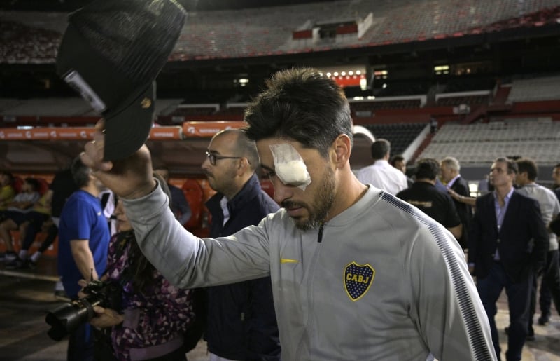Neste sábado (24), o ônibus do Boca Juniors foi recebido a pedradas no momento em que chegava ao Monumental de Nuñez, com jogadores sendo atingidos por estilhaços de vidro. Pablo Pérez sofreu ferimentos no olho e no braço, e foi atendido em hospital próximo do estádio. A delegação xeneize chegava para atuar na segunda partida da final da Copa Libertadores, contra o River Plate. O diretor do time visitante, Jorge Roberto Anró, concedeu entrevista e avisou que não houve clima para acontecer a final. Segundo ele, o elenco não estava em condições de entrar em campo por causa das agressões recebidas no momento da chegada no estádio. O primeiro jogo da final terminou empatado por 2 a 2, sendo que o vencedor da partida deste sábado ficaria com o título. Diante do incidente, a Conmebol comunicou o adiamento da partida.