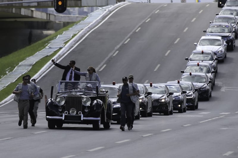 O ensaio para acertar os últimos detalhes da cerimônia de posse do presidente eleito Jair Bolsonaro seguiu todas as etapas do rito, que ocorre no Congresso, no Planalto e no Itamaraty. Em um carro aberto, dois servidores públicos simularam os papéis de Bolsonaro e da futura primeira-dama, Michelle Bolsonaro, na tarde do último domingo (23), na Esplanada dos Ministérios, em Brasília (DF). Por volta das 14h, os servidores passaram pela Esplanada em pé, dentro do Rolls-Royce presidencial. Eles acenaram para o público que acompanhava o ensaio no local. A cerimônia de posse de Bolsonaro está prevista para as 15h no dia 1º de janeiro. De acordo com o Gabinete de Segurança Insitutucional da Presidência da República (GSI), a Esplanada será interditada à meia-noite do dia 30 e só será liberada às 8h do dia 2. A previsão é que um novo ensaio aconteça na tarde do próximo domingo (30), a dois dias da posse.