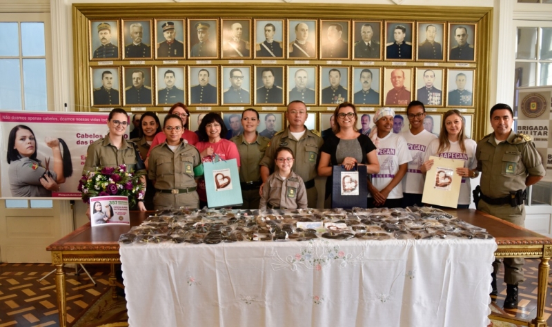 A Brigada Militar apresentou, no salão nobre do Quartel General da Brigada Militaras, as 357 mechas de cabelo arrecadadas na campanha solidária Cabelos de Aço, lançada no último dia 8 de março, Dia Internacional da Mulher. Os cabelos serão entregues a entidades que atendem pessoas em tratamento contra o câncer, como a Associação de Apoio a Pessoas com Câncer (Aapecan), Instituto da Mama (Imama) e Instituto do Câncer Infantil. A iniciativa mobilizou policiais militares femininas dos 16 Comandos de Policiamento Ostensivo no Estado. Estabelecimentos e profissionais se juntaram à BM oferecendo cortes sem custo às voluntárias. A campanha vai se estender o ano todo. Todo tipo de cabelo pode ser doado, desde que possua pelo menos dez centímetros de comprimento ou 15 centímetros, se o corte for repicado.