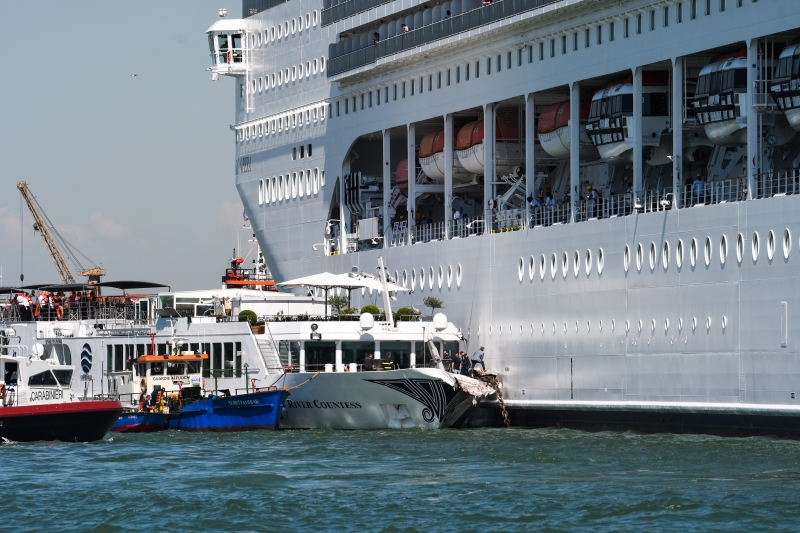 A imagem do cruzeiro MSC Opera colidindo contra um barco turístico gerou pânico, tanto nos passageiros dos barcos quanto em quem passava pelo cais San Basiliono, no canal Giudecca, em Veneza, na Itália. O gigante tem 13 andares e capacidade para 2.679 pessoas, enquanto a embarcação de turismo levava, no momento do choque, aproximadamente 110 pessoas. O acidente ocorreu no domingo (2) e, embora o susto, somente cinco pessoas tiveram ferimentos leves. Vídeos do momento da batida mostram o cruzeiro, aparentemente incapacitado de parar, acionando sua buzina enquanto batia no barco e na doca. Após o ocorrido, um protesto aconteceu no local contra a passagem de navios de grande porte nos canais da cidade. O cruzeiro deixou Veneza em maio e viajou para Montenegro e Grécia antes de retornar para a Itália.