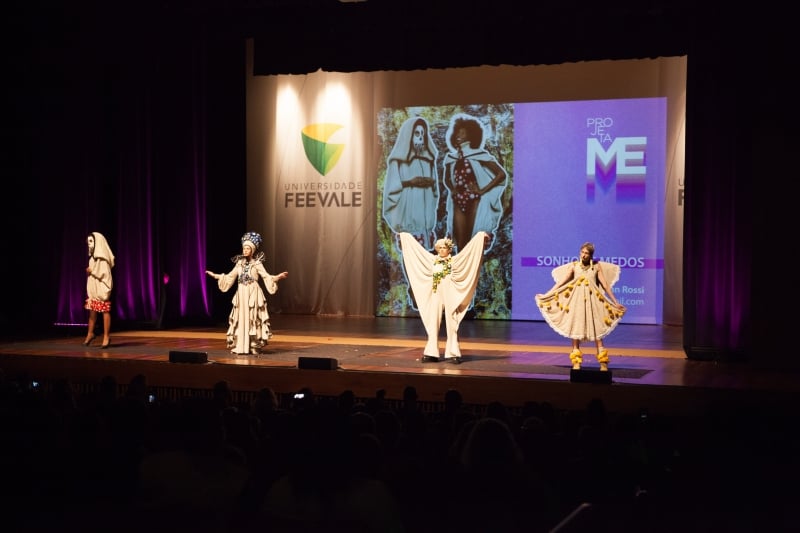 Um desfile de moda realizado no teatro da Feevale, em Novo Hamburgo, marcou a formatura dos alunos do curso de Moda da instituição. Os formandos apresentaram as criações desenvolvidas ao longo da disciplina de Projeto de Coleções – Trabalho de Conclusão II. Em sua 28° edição, o desfile Projeta-me busca estimular a habilidade de pensar e fazer moda. Na recente edição, a ação teve como ponto de partida o pressuposto que a moda está em um mundo cada vez mais consciente da sua diversidade. Conforme a coordenadora do evento, Ana Cleia Hoffmann, a turma buscou referências criativas em elementos das décadas de 40 e 70 para a composição do styling, optando por fazer uma curadoria com roupas usadas, com o intuito de atribuir novos usos às peças e levando um viés sustentável ao mercado. O conceito foi aliado ao aniversário de 50 anos da Aspeur/Feevale, com a produção de um editorial e de um fashion film na Casa Schmitt-Presser.