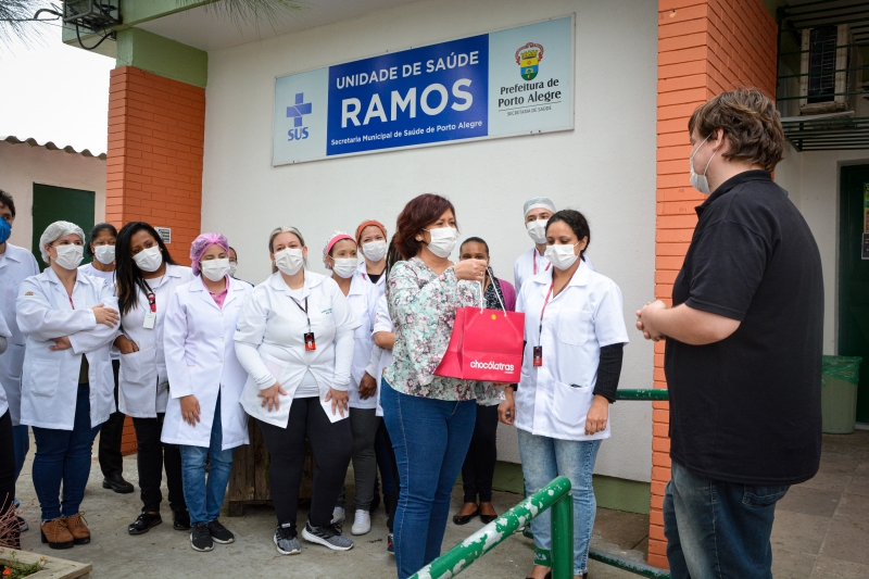 A rede Chocólatras Anônimos resolveu deixar mais doce o dia a dia de profissionais de saúde em Porto Alegre que têm trabalho redobrado com a pandemia de coronavírus, com mais atendimentos e alertas para casos de síndromes respiratórias e gripais. "Queremos valorizar o trabalho de quem está na linha de frente do combate a Covid-19 e levar solidariedade", diz a rede. Cookies cobertos de chocolate já chegaram a 450 funcionários da UPA Moacyr Scliar e das Unidades Básicas de Saúde Ramos, Primeiro de Maio e Tristeza. “Recebemos a ação com muito carinho. Estes pequenos gestos são uma forma de reconhecer o que fazemos”, comentou Cristiane Ciulla, enfermeira e assistente do Grupo Hospitalar Conceição. Pedro Monteiro, um dos sócios proprietários da Chocólatras, cita que a iniciativa ajuda também a evitar desperdício, "uma vez que a rede está funcionando de forma parcial por conta da pandemia".