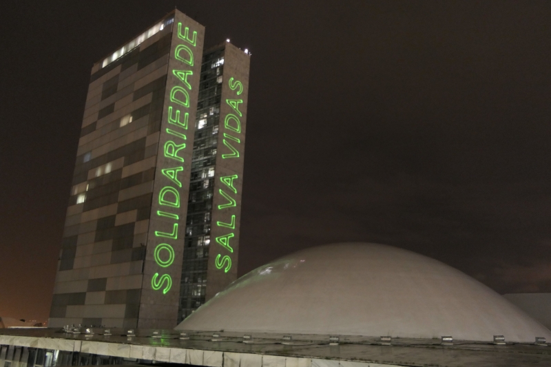 As torres do Congresso Nacional, em Brasília, receberam uma iluminação especial ao cair da noite, no início desta semana. As frases "holocausto nunca mais" e "solidariedade salva vidas" foram projetadas na segunda-feira (20), em lembrança ao Dia do Holocausto e do Heroísmo (Yom HaShoá VehaGvurá, em hebraico). Segundo o Senado, a intenção é passar uma mensagem de esperança ao País em meio à pandemia da Covid-19. A iniciativa remete aos 6 milhões de judeus assassinados pelo nazismo e integra a ação da Confederação Israelita do Brasil (Conib). Além da preservação da memória, a data relembra à humanidade o genocídio concebido pelos nazistas e suas consequências na psique humana. Este é o terceiro ano em que o Congresso Nacional participa da iniciativa.