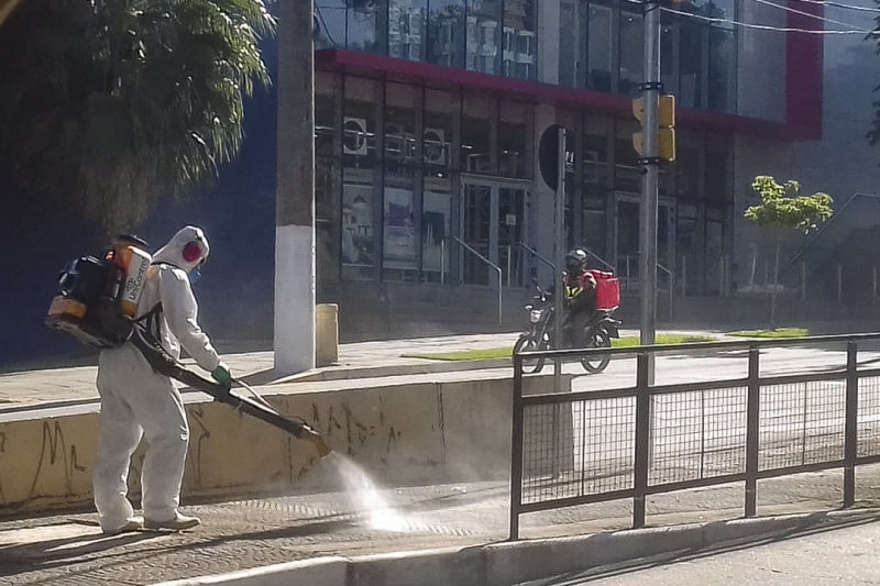 Prefeitura de Porto Alegre pulveriza áreas públicas de grande circulação