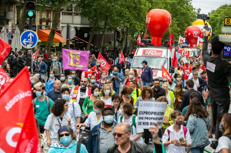 Trabalhadores da área da saúde e aliados tomaram as ruas de Paris mais uma vez (foto) em busca de melhores condições de trabalho. Após a última manifestação, no dia 16 de junho, que terminou em violência, a mobilização dessa terça-feira (30) teve menores proporções. Os trabalhadores ainda pedem por maiores investimentos na área, além de denunciarem a falta de equipamentos nos hospitais franceses e os baixos salários durante a crise do novo coronavírus no país. O programa Segur de La Sante, que marca o estopim dos protestos, foi proposto pelo governo francês no final de maio para atacar as disparidades no área da saúde, mas, de acordo com os manifestantes, não gerou mudanças significativas. Uma reunião final sobre as medidas ocorre nesta sexta-feira (3), na companhia da ex-líder do sindicato Confederação Francesa Democrática do Trabalho (CFDT), Nicole Notat.