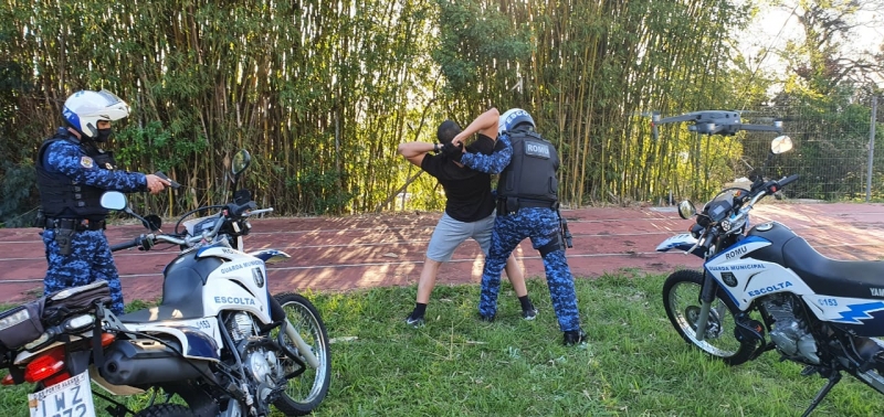 Para possibilitar maior agilidade às ações de combate à criminalidade em Porto Alegre, principalmente nas áreas de praças e parques, a Guarda Municipal passou a contar com a ajuda de um drone. Nesta quinta-feira (10), integrantes do Grupo Aéreo e Precursoria (GAP), composto por agentes da Ronda Ostensiva Municipal (Romu) recebem treinamento para uso do equipamento. A simulação de uma abordagem com a utilização do drone foi feita na sede da Romu, localizada no bairro Rio Branco. Segundo a corporação, o aparelho irá colaborar nas ações e dar apoio ao trabalho de inteligência, monitoramento e acompanhamento de operações.