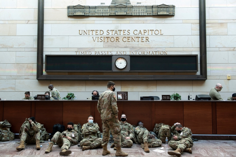 Soldados de Guarda Nacional dos Estados Unidos fazem segurança do Capitólio