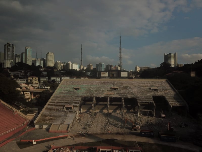 A demolição do popular tobogã do estádio do Pacaembu, na Zona Oeste da capital paulista, está a todo vapor. Iniciada no final do mês de junho, após a Prefeitura de São Paulo liberar o alvará de autorização de obras de reforma, a obra do Complexo Pacaembu vai custar R$ 400 milhões e deve durar 28 meses. A demolição do tobogã começou por uma arquibancada construída na década de 70 localizada atrás de um dos gols. As obras vinham sendo contestadas judicialmente pela Associação Viva Pacaembu. A associação alegava que o tobogã não poderia ser demolido por causa do tombamento do estádio, mas a prefeitura afirma que a estrutura foi construída muito tempo depois, não fazia parte da estrutura original e não estava protegida pelo tombamento. O estádio foi inaugurado em 1940. No lugar do tobogã, será construído um prédio de cinco andares, com o terreno assumido pela concessionária Allegra Pacaembu pelos próximos 35 anos. O edifício vai abrigar um Centro de Convenções e eventos, e um estacionamento na parte do subsolo.