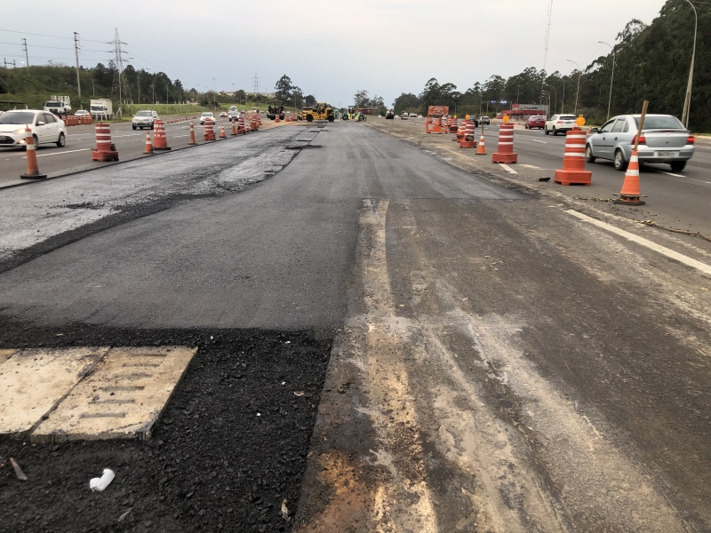 O trecho da autoestrada freeway (BR-290), no km 77, em Gravataí, na Região Metropolitana de Porto Alegre (RMPA), onde era o pedágio está em obra em parte das pistas. O pedágio foi trocado para outro ponto aque fica após a entrada da cidade, o que era previsto na nova concessão, agora com a CCR ViaSul. A concessionária informa que as intervenções, que reduzem o número de faixas para o tráfego no trecho, são de freadequação do pavimento. Estão sendo feitos serviços finais de reperfilagem para ajustar a declividade do traçado. Segundo a CCR-ViaSul, a medida vai melhorar o escoamento das águas da chuva. Após essas obras, com máquinas e colocação de camada de asfalto, será implanda barreira de concreto separando as pistas Leste e Oeste, na ligação com Porto Alegre. A barreira eleva a segurança do tráfego. A previsão é de conclusão até o fim deste mês.