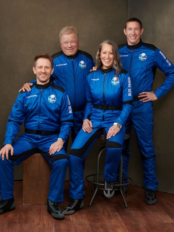 O ator William Shatner (em pé, à esquerda), famoso por interpretar o Capitão Kirk nos filmes e na série de ficção científica Jornada nas Estrelas, conhecerá, nesta quarta-feira (13), de forma realista, um pouco mais das sensações vividas por seu personagem. Ele participará da segunda missão tripulada da empresa de turismo espacial Blue Origin, que tem como proprietário o bilionário Jeff Bezos. Aos 90 anos, Shatner será a pessoa mais velha a ir ao espaço. A aventura será transmitida ao vivo pelo Twitter da Blue Origin. O foguete é totalmente automatizado e reutilizável. Ele decola verticalmente, com uma cápsula que se desprende durante o voo. Na viagem, o ator vai ultrapassar a chamada linha de Karman, o limite reconhecido internacionalmente entre a atmosfera terrestre e o espaço, a uma altitude de 100 quilômetros. A previsão é de que a experiência dure 11 minutos. Além do ator, estarão no foguete mais três passageiros: Chris Boshuizen, antigo engenheiro da agência espacial norte-americana (Nasa) e cofundador da empresa Planet Labs, que tira fotografias de alta resolução da Terra, utilizando satélites; Glen de Vries, cofundador da Medidata Solutions, empresa de software para a indústria farmacêutica; e Audrey Powers, responsável pelas operações de voo e manutenção de foguetes da Blue Origin.