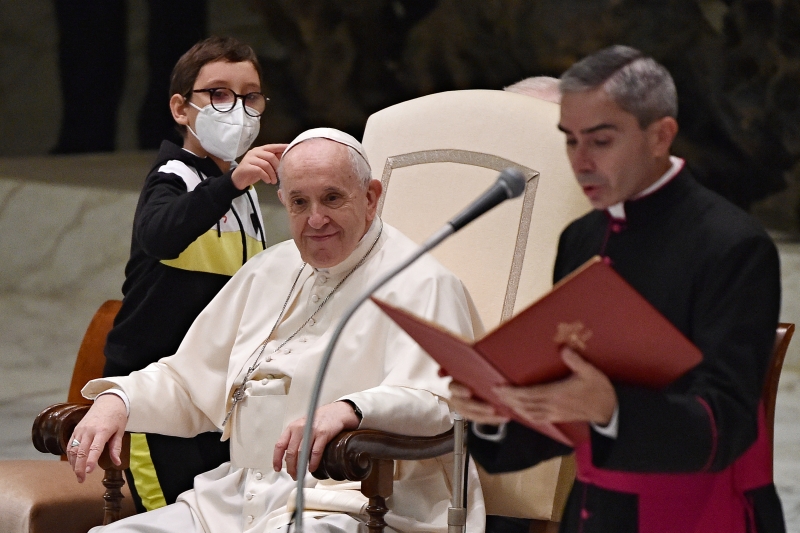 Menino chama atenção ao querer o solidéu do Papa Francisco