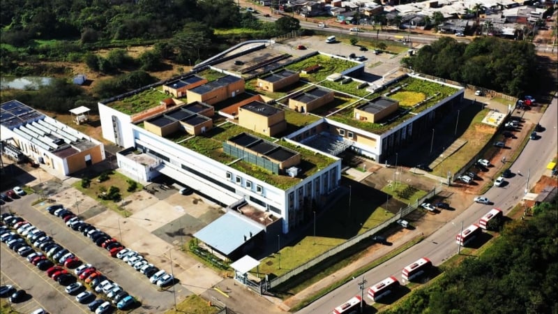 A vista aérea do Hospital Restinga e Extremo-Sul (HRES), mais distante do Centro de Porto Alegre, dá ideia das medidas da instituição na busca do conceito de 100% sustentável. Na cobertura, o teto verde se destaca, com plantas e flores que ajudam na economia de energia, diz o hospital. Nesta sexta-feira (29), começa a operar a Estação de Tratamento de Esgoto (ETE), que teve investimento de R$ 35 mil, parte bancada pelo ex-gestor, o Hospital Moinhos de Vento, informa a Associação Hospitalar Vila Nova, atual administradora. Mais projetos estão a caminhos, segundo o hospital: montagem da infraestrutura para a reutilização das águas das chuvas, implantação da maior horta hospitalar do Estado, instalação de uma usina de energia fotovoltaica e substituição das lâmpadas por tecnologia LED.