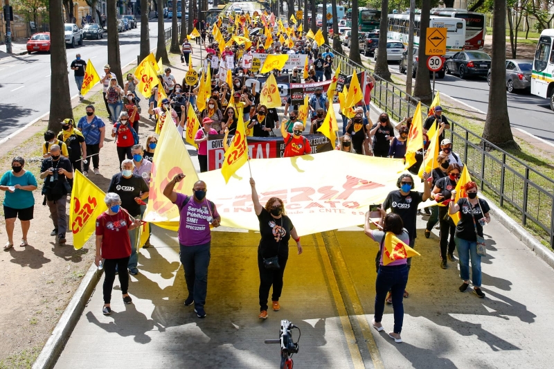 Educadores de diversas regiões do Rio Grande do Sul realizaram ato público (foto) nesta terça-feira (9) para exigir reposição salarial, manutenção dos protocolos de segurança nas escolas e o fim dos descontos nos contracheques. A presidente do CPERS, Helenir Aguiar Schürer, lembra que a categori está há sete anos sem receber reajustes. No último mês, o CPERS protocolou uma proposta de emenda ao texto da Lei Orçamentária Anual (LOA) buscando inserir na previsão orçamentária de 2022 a recomposição salarial de 47,82% para os servidores ativos, inativos e pensionistas vinculados à rede estadual de ensino. Em nota, o governo gaúcho diz que "está comprometido" em realizar a reposição salarial dos professores, "porém, ainda há enorme incerteza quanto à mudança do piso nacional em janeiro de 2022". O texto ainda informa que o Executivo vem realizado reuniões da equipe do Grupo de Assessoramento Especial (GAE) para debater com o CPERS uma proposta de reajuste do Magistério.