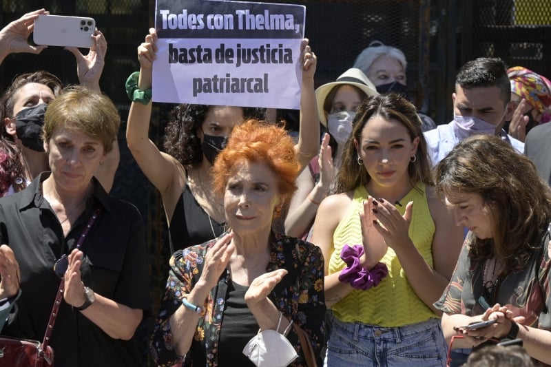 A Anistia Internacional convocou uma mobilização em frente ao Consulado Brasileiro na Argentina nesta quinta-feira (10). A mobilização busca exigir justiça após o judiciário brasileiro suspender o processo por estupro contra o ator argentino Juan Darthés. A atriz argentina Thelma Fardin (centro/direita) aplaude ao lado da também atriz Mirta Busnelli (centro/esquerda) enquanto outra atriz segura uma placa com os dizeres "Todos com Thelma, chega de justiça patriarcal" (foto). O ator está foragido no Brasil desde a denúncia, em 2018, por ter dupla cidadania. A ação é movida por Thelma e o julgamento teve início em novembro de 2021 após o trabalho em conjunto dos Ministérios Públicos Fiscais de três países envolvidos: Brasil, Argentina e Nicarágua, onde o crime ocorreu, em 2009. Na época, Thelma tinha apenas 16 anos e os atores faziam parte do elenco da série Patito feo, que era gravada no país centro-americano.