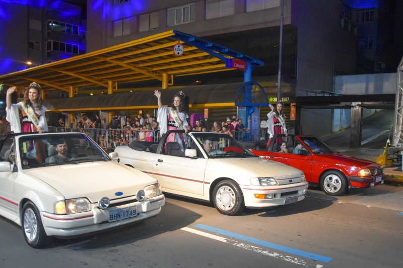 O quarto Desfile Cênico Musical da Festa da Uva na noite deste sábado (26), na rua Sinimbu, foi prestigiado por milhares de pessoas. Os três desfiles anteriores, realizados nos dias 20, 23 e 24/02, reuniram 27 mil pessoas no centro da cidade, conforme a organização do evento. Antes de começar a apresentação, composta por seis alas, 10 carros alegóricos, mais de 50 quadros e 1,2 mil figurantes, o público assistiu a um pré-desfile com distribuição de água pelo Samae e a presença do Samaezito, carros antigos, patrocinadores e representação de municípios da região. Neste sábado, participaram as soberanas da Fecouva de Flores da Cunha e Feprocol de Nova Pádua. Os próximos desfiles estão agendados para os dias 1º e 5 de março, terça e sábado. Ingressos para o parque, desfiles e shows nacionais podem ser adquiridos no www.festadauva.com.br.
