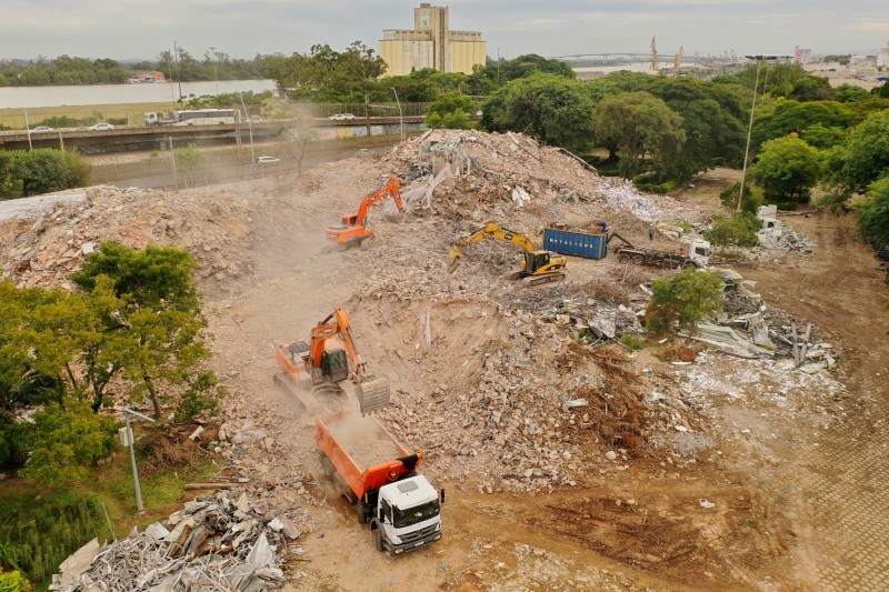 A segunda etapa da limpeza do terreno do antigo prédio da Secretaria da Segurança Pública (SSP), que foi implodido em 6 de março, após ter sido atingido por um incêndio em julho de 2021, começou esta semana. A nova etapa faz parte das obrigações da empresa contratada para o serviço, que inclui o descarte adequado dos resíduos. Os caminhões estão recolhendo entulhos na área entre a rua Voluntários da Pátria e a avenida Castelo Branco, no Centro de Porto Alegre. São cerca de 20 mil toneladas de escombros. As estruturas mais altas que ainda estavam em pé no terreno, após a detonação, já foram derrubadas com ajuda de cabos tracionados. Os primeiros dias de trabalho focam na fragmentação para separação do concreto das ferragens. A empresa deve concluir a limpeza no prazo planejado, de cerca de um mês.