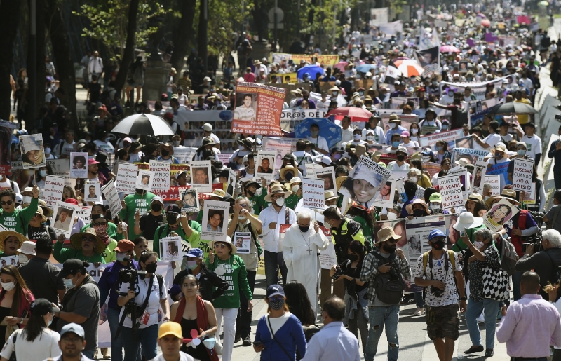 Milhares de mulheres passaram o Dia das Mães em marcha pela Cidade do México nesta terça-feira (10), enquanto cantavam e carregavam fotos de seus parentes desaparecidos. A mulheres exigem medidas governamentais e respostas em meio a uma onda de violência e desaparecimentos cada vez maior. “Onde estão, onde estão? Nossos filhos, onde eles estão?” entoavam as mulheres na caminhada pela Avenida Reforma. "Em vez de comemorar com a família, temos que fazer uma marcha para gritar pedindo nossos filhos de volta", disse à AFP Adriana Martínez, de 48 anos. Segundo as Nações Unidas, mais de 95 mil pessoas foram oficialmente registradas como desaparecidas no México. O Registro Nacional de Pessoas Desaparecidas contabiliza 8 mil novos casos anualmente nos últimos cinco anos.