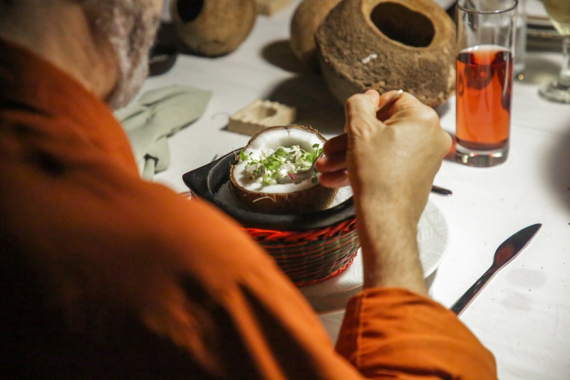Paulo é o criador do projetoFoto: Felipe Nogs/Agencia Preview/Divulgação/JCO ceviche de entrada foi servido em um coco aberto ao meioFoto: Felipe Nogs/Agencia Preview/Divulgação/JC