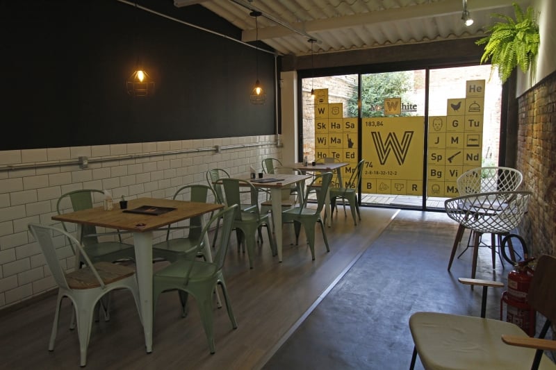 Quem passa pela rua Gen. Lima e Silva, nº 1196, no bairro Cidade Baixa, encontra, há três semanas, um espaço cheio de referências ao universo da química. Os mais atentos - e, principalmente, fãs de séries - percebem que não para por aí. O local é um reduto de Walter White, personagem que é o eixo principal do aclamado seriado Breaking Bad. O Mr. White se propõe a ser uma cafeteria que usa esse enredo como norte de seus processos.