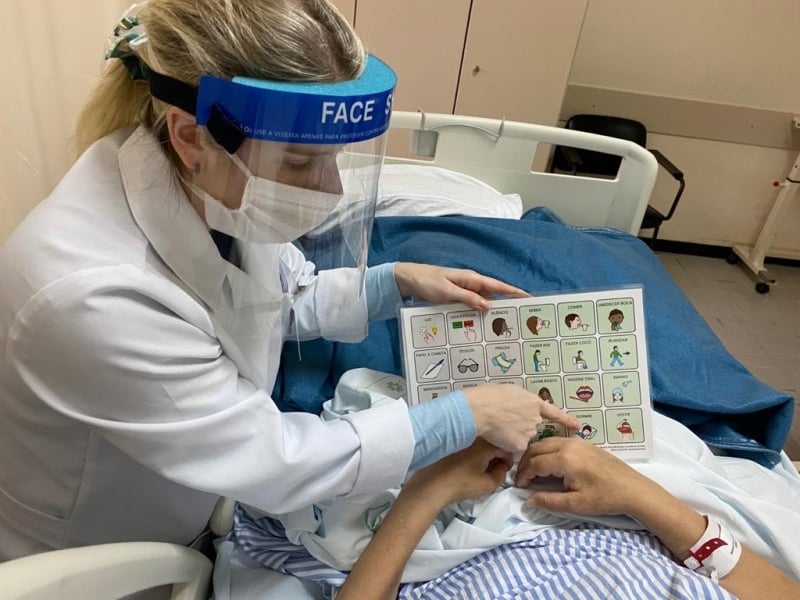 Pensando em auxiliar a comunicação dos pacientes com Covid-19 que fazem uso de ventilação mecânica para respirar ou têm a fala limitada em função de procedimentos decorrentes da doença, um grupo de pós-graduação da Universidade Federal do Rio Grande do Sul (Ufrgs) desenvolveu uma prancha de comunicação alterativa que tem ajudado os internos a expressarem suas necessidades e melhorarem a qualidade de vida durante o processo de recuperação.