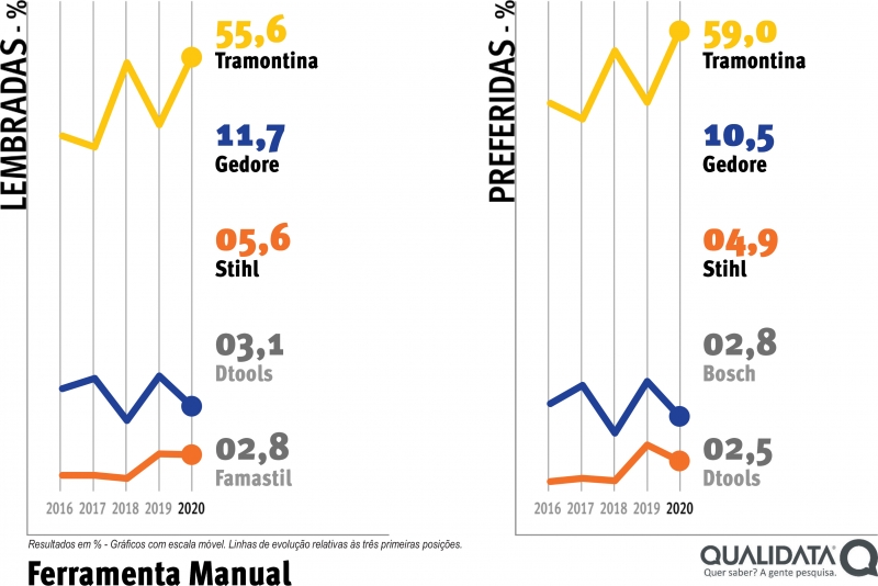 O rótulo deste setor foi alterado para Ferramenta Manual, concentrando a avaliação nas marcas de ferramental que dependam de energia exclusivamente humana para seu funcionamento. Essa distinção é importante porque uma das novidades desta edição é exatamente a introdução da categoria Ferramenta Motorizada, apresentada na sequência.