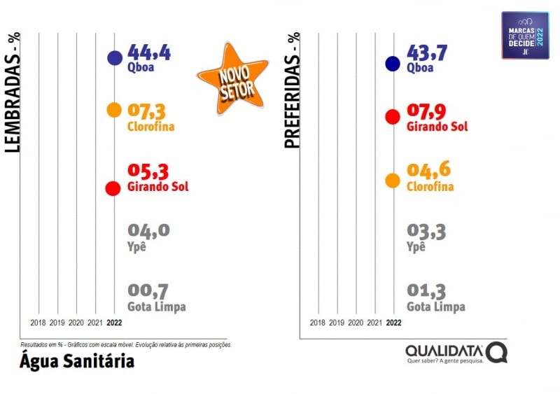 Os primeiros números levantados pela Qualidata mostram a marca Qboa na liderança absoluta, totalizando 44,4% na lembrança e 43,7% na preferência.
