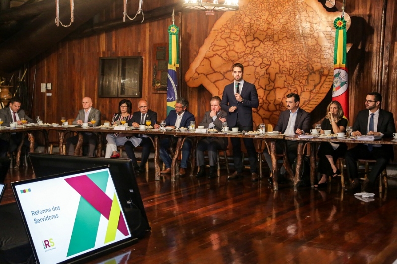 Antes de anunciar o formato dos projetos que vão para a Assembleia Legislativa ainda nesta quarta em regime de urgência para votação, Leite se reuniu com parlamentares da base e da oposição - o petista Fernando Marroni foi pela bancada, convidados para a agenda no Galpão Crioulo do Palácio Piratini, para apresentar o perfil dos projetos.