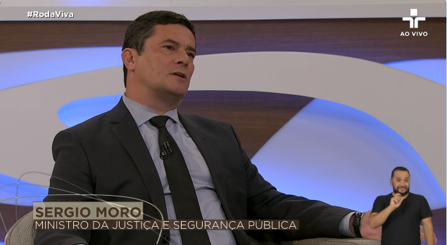 Moro disse que chegou a se falar durante as eleições que Bolsonaro cercearia a liberdade de imprensa e o poder Judiciário afirmou acreditar que o presidente tem "dado ampla liberdade à imprensa". "Não se vê qualquer iniciativa", afirmou na noite desta segunda-feira (20). O ministro, então, foi interrompido pelos jornalistas do programa, que passaram a listar alguns casos em que o presidente atacou jornalistas e tratou veículos de imprensa com discriminação. Moro respondeu que se tivesse recusado ser entrevistado pelo Roda Viva não estaria agindo contra a liberdade de imprensa, pois tem o direito de ir e vir. "Ele é criticado e reage", disse em seguida, sobre o presidente.