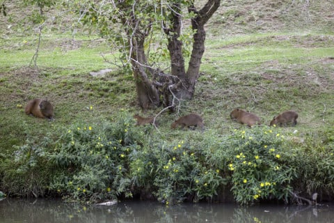 Família de capivaras se espalha pelo Arroio Dilúvio