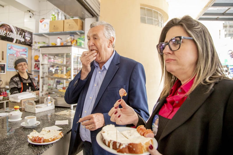 Após o debate do Grupo Editorial Sinos, na manhã de quarta-feira em Novo Hamburgo, o candidato do PP ao Piratini, Luis Carlos Heinze, saboreou um típico lanche da cidade. Pão caseiro com nata e linguiça aferventada. O frischtick, lanche em alemão, foi comprado nas nas bancas da avenida Pedro Adams Filho, tradicional ponto de encontro da cidade. Mas não vá no Google para ver a tradução. Segundo o Google, é carrapato fresco.
