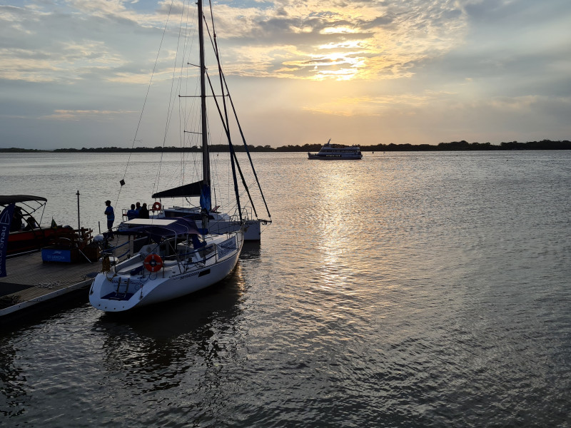 ...o barquinho vem. Como na música, a vista do Guaíba pelo Cais Embarcadero é um mar de tranquilidade, especialmente na hora do pôr do sol. Os empreendedores dedicam determinados dias para reunir público na hora do poente, com shows, música e alegria para todos, inclusive para a criançada, que tem um parquinho à sua disposição.