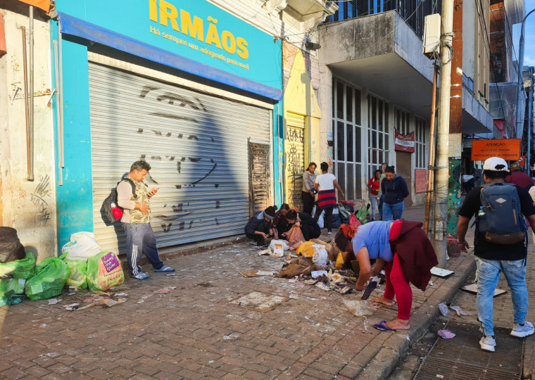 No Centro de Porto Alegre, nas imediações da Praça XV, Mercado Público e da avenida Voluntários da Pátria, até os restos da faxina das lojas de confecções e calçados são disputados por aqueles que perderam tudo e também pelos que não perderam nada mas vivem no miserê.