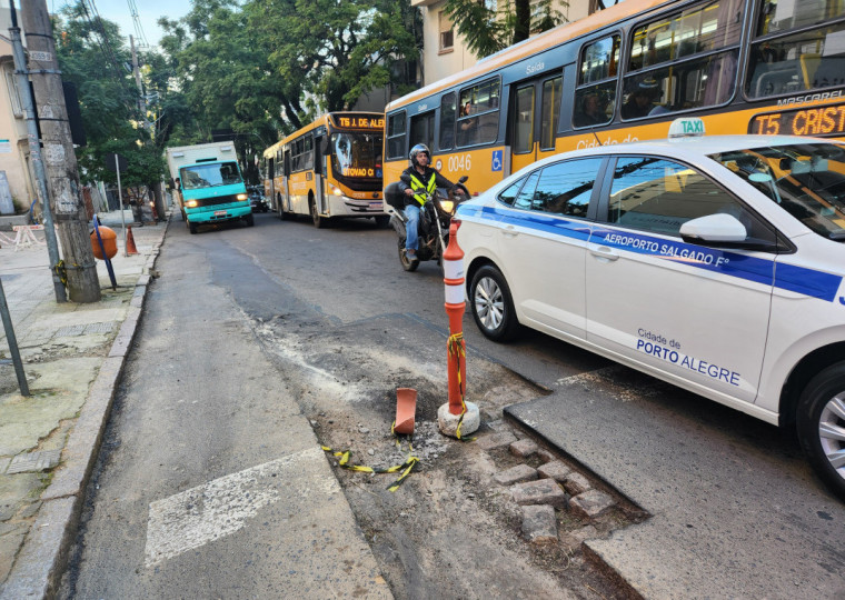 A rua Garibaldi não conhece paz há um bocado de tempo. Estreita, tem carros estacionados dos dois lados, embora seja proibido; as eternas obras do Dmae prejudicam ainda mais este trecho e afetam o trânsito sempre complicado até antes da esquina com a rua Vasco da Gama. Tem ainda o hospital com seu movimento e a cereja do bolo é o cortapneu, pouco antes da avenida Independência.