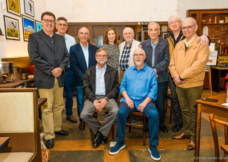 Integrantes da Academia Sul-Rio-Grandense de Medicina prestigiam os confrades Jorge Neumann e Sérgio de Paula Ramos (sentados), que expõem fotografias da mostra Terra Animal, e que podem ser vistas até 14 de outubro na galeria Carlinhos Rodrigues.