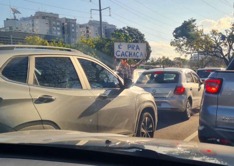 O cartaz deste pedinte na avenida Ipiranga é um notável exercício de sinceridade. É muito comum que o dinheiro dado aos sem-teto seja antecedido pela recomendação "mas não vai gastar com bebida!" Mas a observação cuidadosa desse povo mostra um aparente paradoxo: talvez seja apenas uma forma de obter a boa vontade dos motoristas sem gastar tudo em birita. Ou não.