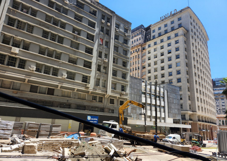 Depois de longo e tenebroso inverno, a parte da avenida Borges de Medeiros que servia de depósito de materiais e equipamentos para as concessionárias da revitalização do Quadrilátero do Centro Histórico de Porto Alegre começa a ser limpa. Em primeiro plano, observam-se os restos mortais de cabos de fibra óptica ou de iluminação que foram saqueados pelos especialistas em derreter fios para ficar com o cobre. A eles, a cadeia mais dura que tiver.