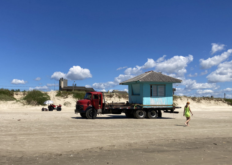 O lado bom de ter uma casa de madeira ou similar que não seja de cimento é que levá-la de um lugar para o outro não exige caminhões muito pesados, como este em Rainha do Mar. Se bem que botá-la em cima do possante, depois tirá-la sem que ela desmanche exige prática e habilidade. No mundo animal, quem é campeão é o caracol.