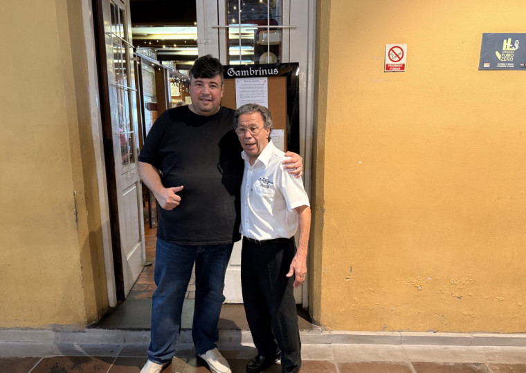 Sai ano, entra ano e essa dupla está lá, mais firme que fundação da ponte do Guaíba. O proprietário do restaurante Gambrinus, João Melo, fez questão de posar com o funcionário da casa, o Zezinho, que é uma espécie de RP (relações públicas) do Mercado Público de Porto Alegre. Não parece, mas o último samurai de Hulha Negra é sobrevivente de várias enchentes e incêndios do Mercado. Guarda até um avental chamuscado e calças com a enchente de 1941.