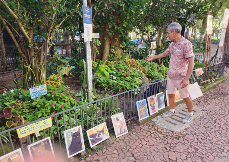 Roberto Caricaturista, como é conhecido, transformou uma pequena área ao lado do prédio da Caixa Federal na Praça da Alfândega em um aprazível jardim, em que os passarinhos vão beber água e, eventualmente, construir seus ninhos. A enchente destruiu o local, mas Roberto o reconstruiu com seus próprios recursos, como desde o início. Não ganha nenhum tipo de dinheiro oficial, age apenas pelo prazer de transformar um canto inóspito em atração para quem passa pela Rua da Praia. Palmas para o caricaturista.