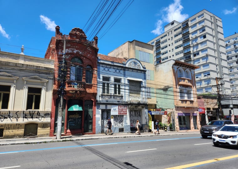Este casario da avenida Independência, perto da rua Barros Cassal em Porto Alegre, ainda conserva traços da antiga imponência, quando as famílias caprichavam nos prédios que erguiam e até faziam disputa pela beleza. O tempo, este senhor implacável com seu assecla, e a poluição, as deixaram mal na parada. Mereciam uma restauração que lembre o antigo brilho.
